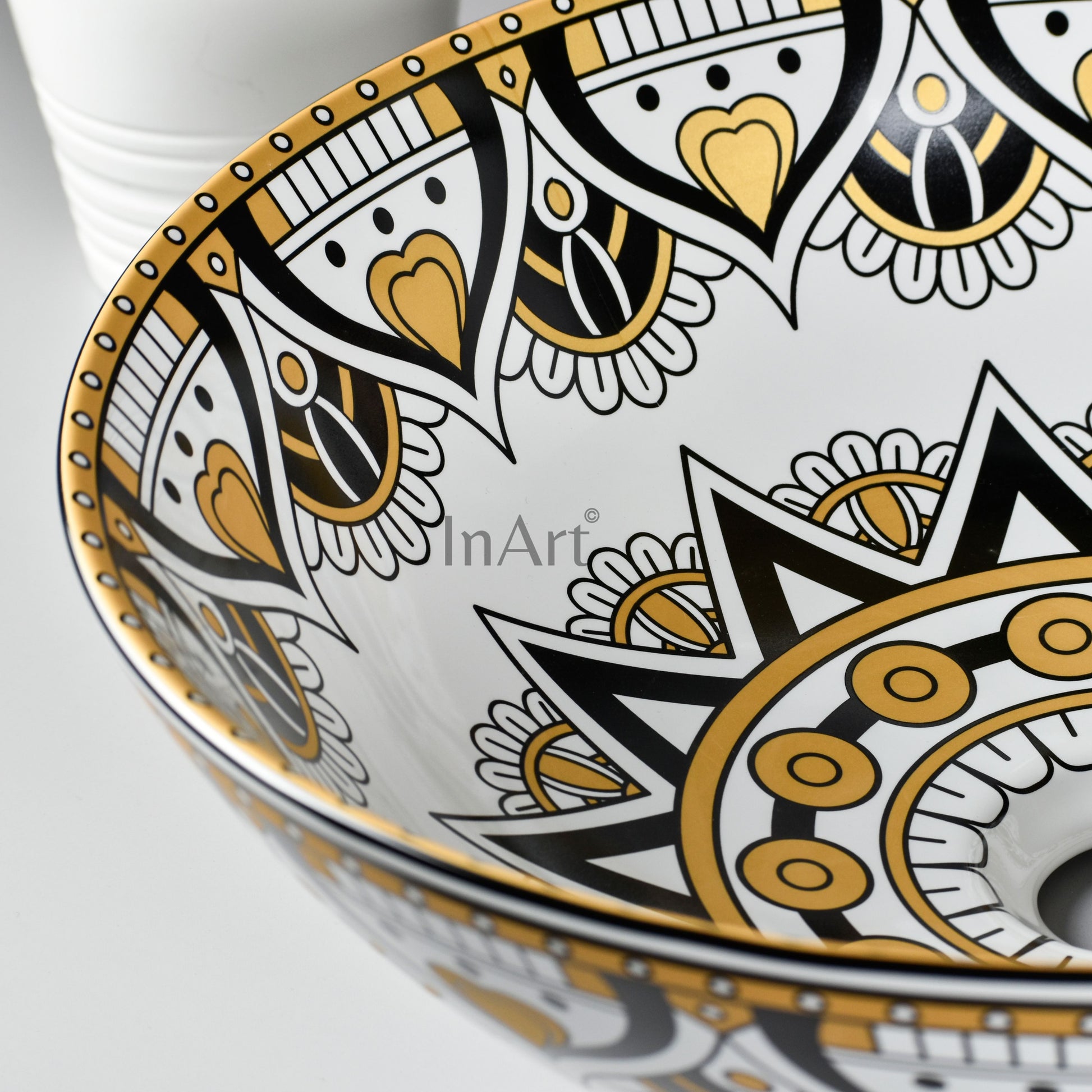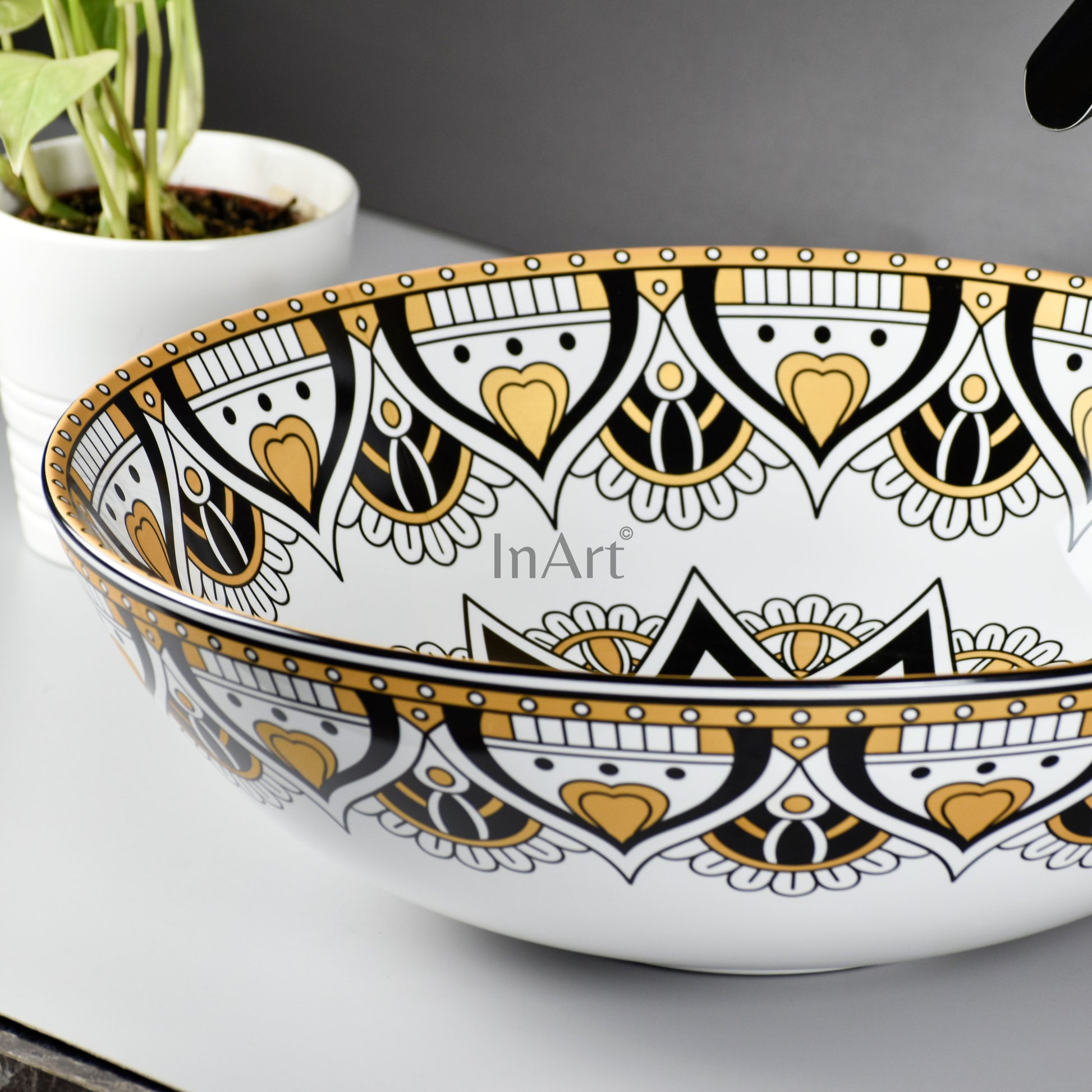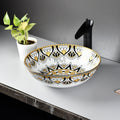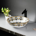 Made from premium ceramic with a protective glaze, this vessel sink resists stains, scratches, and water absorption, ensuring long-lasting beauty. Measuring 15.5" x 15.5" x 5.5" (39 x 39 x 14 cm), it provides a spacious yet compact wash area that fits seamlessly onto countertops or vanities.