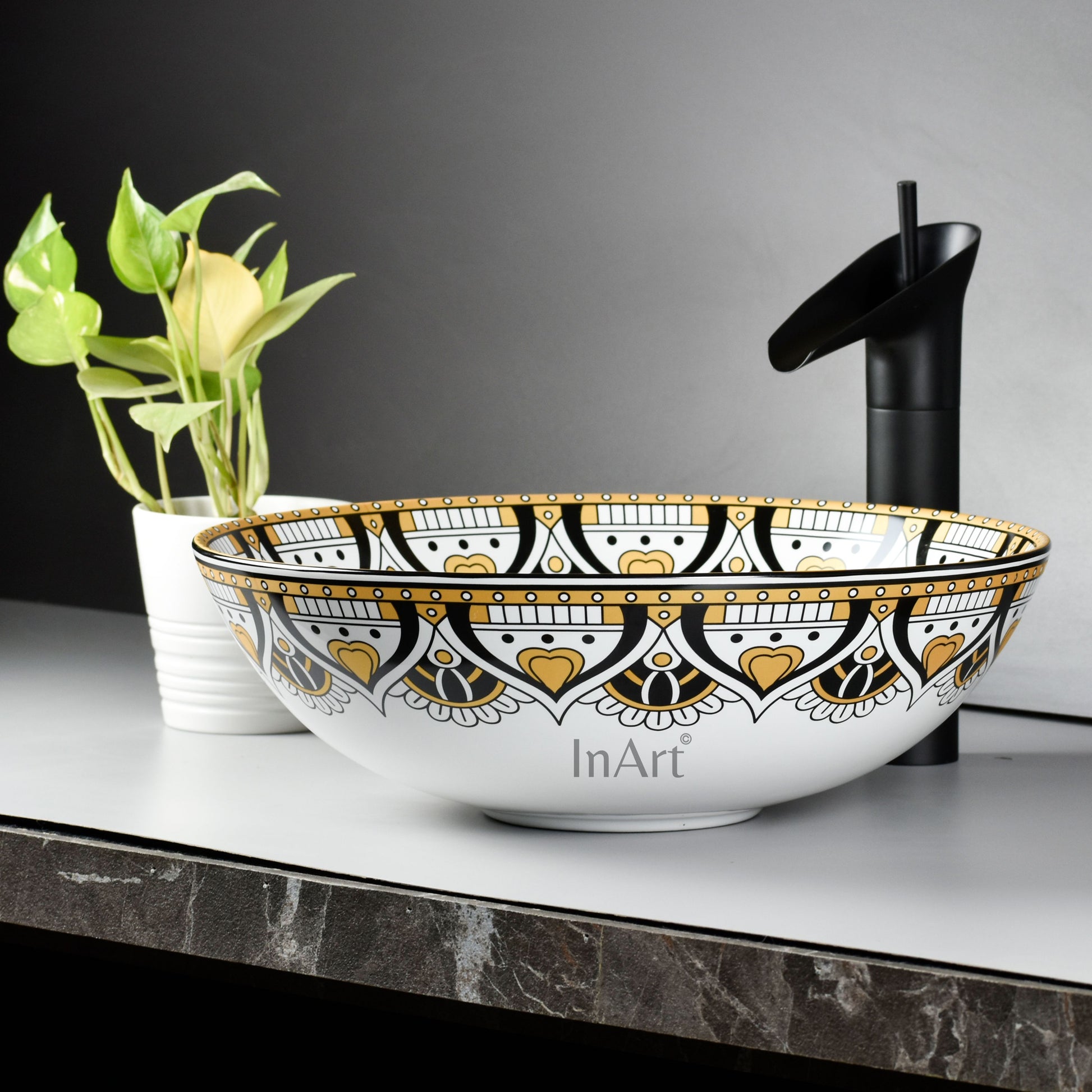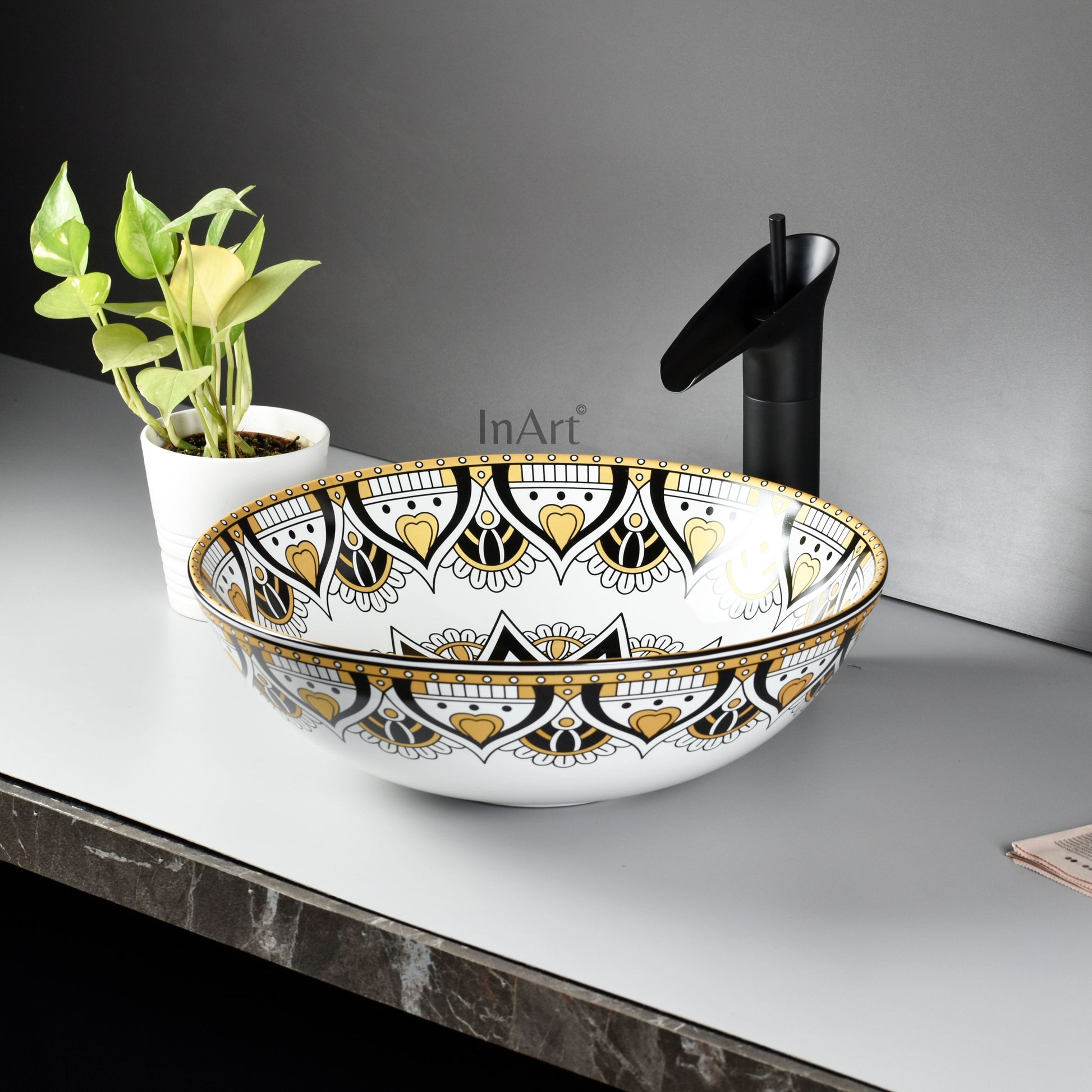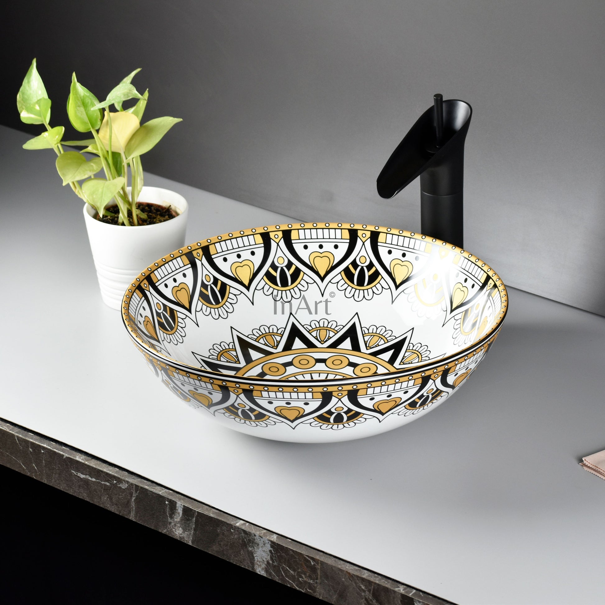 InArt Mexican Yellow Ceramic Vessel Sink – 15.5" Round Countertop Bathroom Vanity Basin DW264