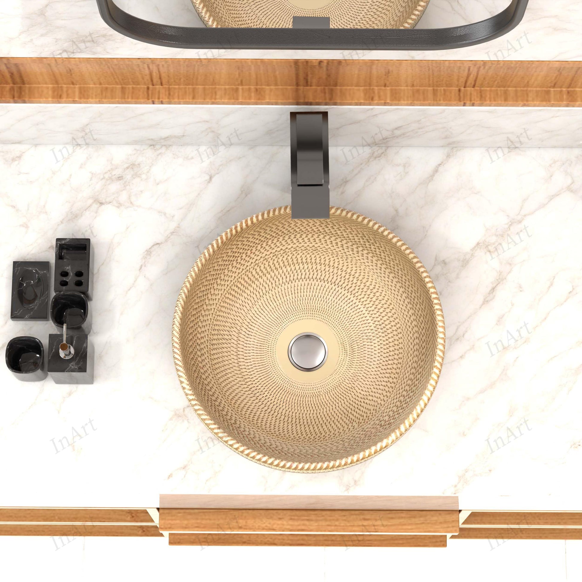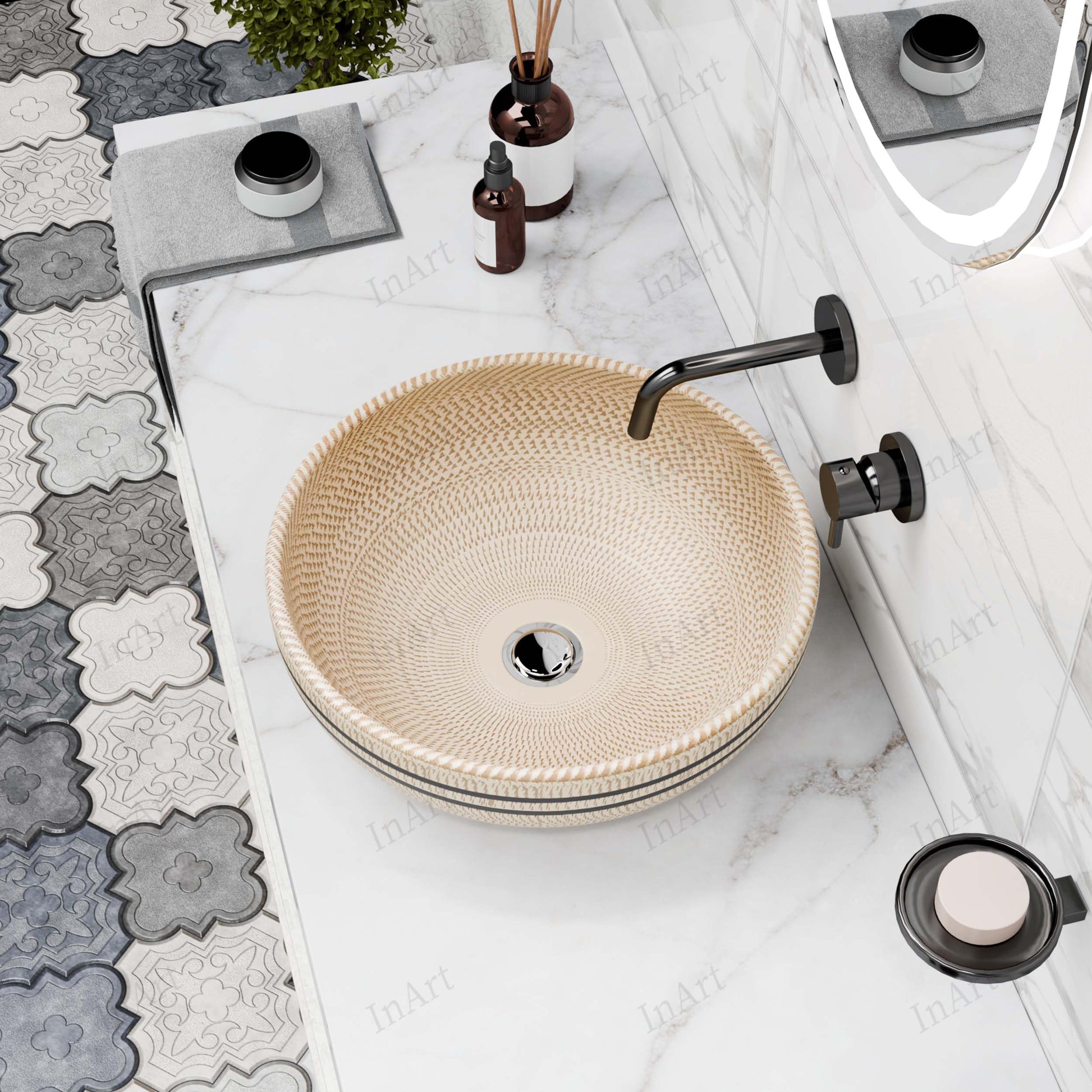 InArt Vessel Sinks for Bathroom 15.75" – Ceramic, Beige Satin, Textured Pattern