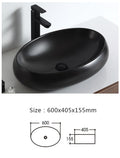 InArt Modern Oval Black Matte Ceramic Vessel Sink – 24" x 16" Countertop Bathroom Vanity Basin DW228