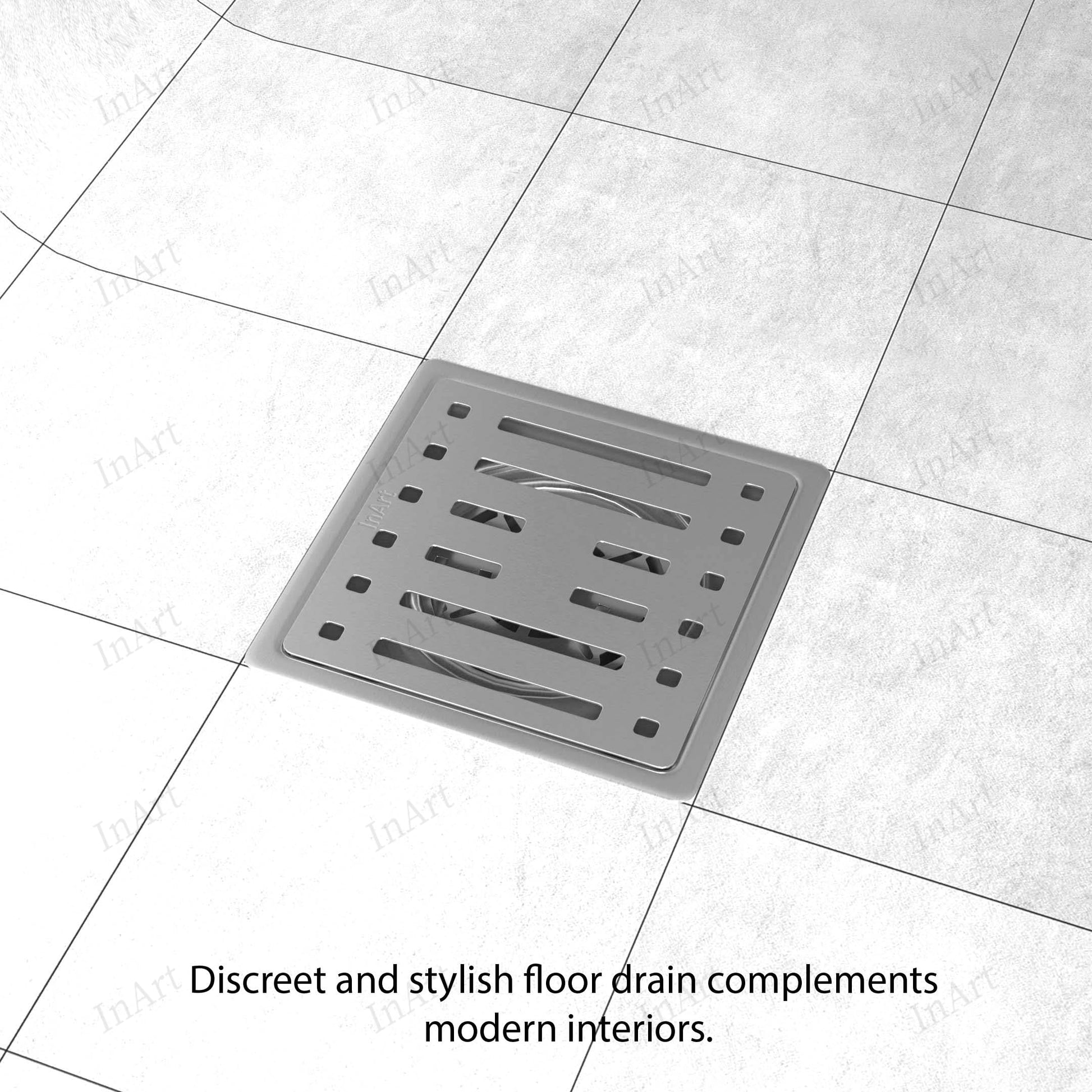 InArt Brushed 304 Stainless Shower Floor Drain – Stainless Steel Floor Drain Covers, 5" Square