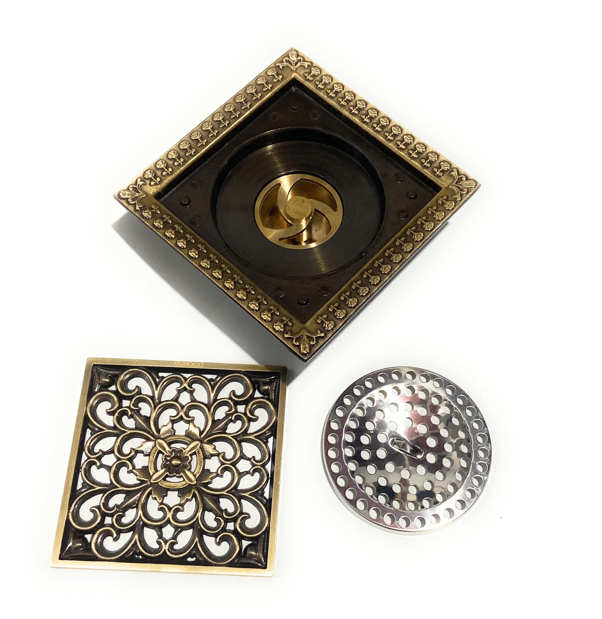 Upgrade your tile floor with a square shower drain that blends vintage style with everyday practicality—finished in antique brass and built from solid brass for long-lasting performance.